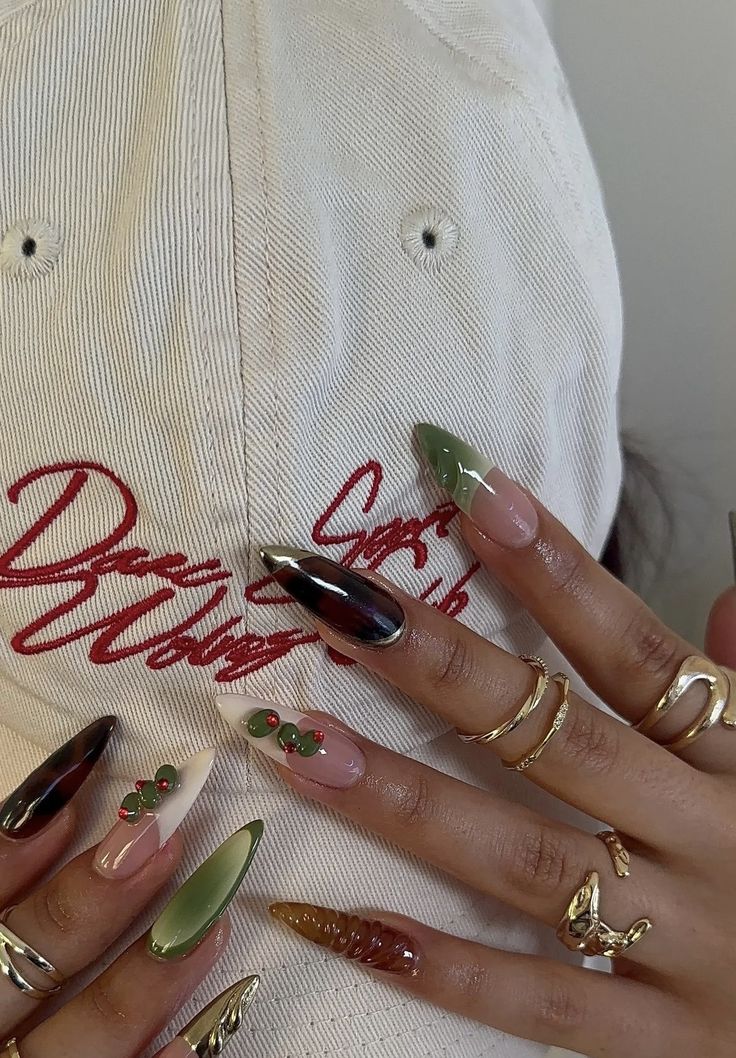 Embrace nature-inspired luxury with the Emerald Vine press-on nail set. These elegant almond nails feature a soft nude base adorned with intricate 3D gold vine detailing. Sparkling emerald green crystals and dainty pearl accents create a regal, botanical aesthetic perfect for special occasions. Reusable and easy to apply, this handcrafted set delivers a high-end salon finish that radiates charm and sophistication.